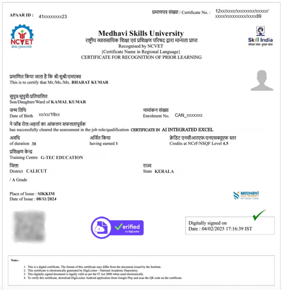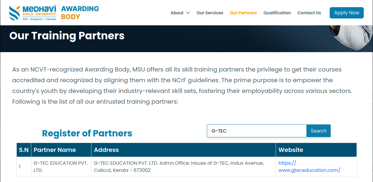 G-TEC EDUCATION is proud to collaborate with Medhavi Skills University (Awarding Body) offer Online Skilled Credit Based courses as per the National Credit Framework (NCrF) guidelines.
